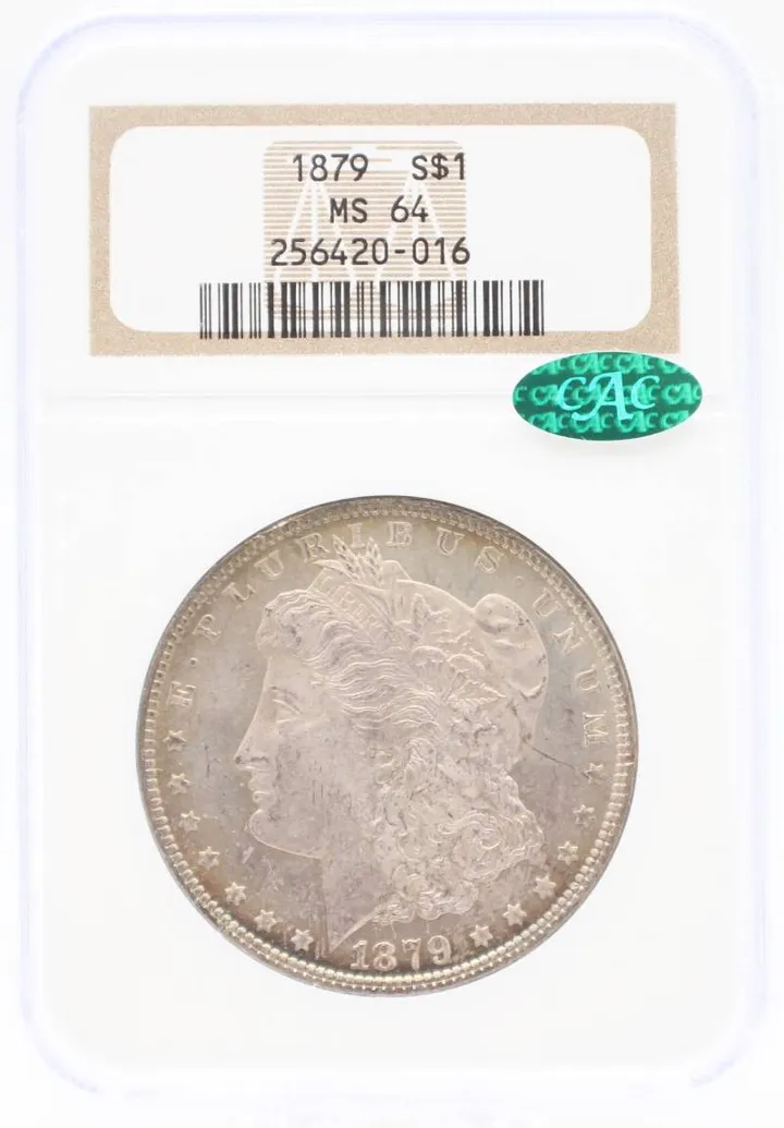 In 1879, the Philadelphia Mint struck over 14 million Silver Morgan Dollars, yet only a small fraction have received the MS64 grade from NGC. This coin exhibits exceptional luster, making it a valuable addition to any collection. Furthermore, it has been Certified by CAC (Certified Acceptance Corporation), a trusted third-party that verifies high-quality graded coins. A CAC sticker ensures the coin meets the highest standard for today’s selective collectors, adding further credibility and investment confidence.