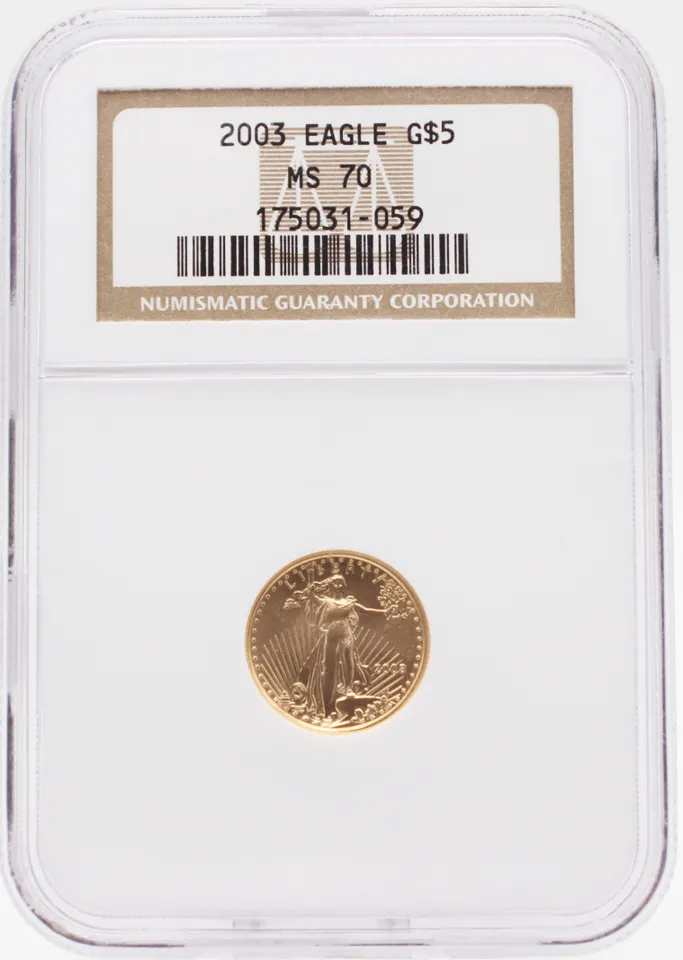 In 2003, the U.S. Mint released the 18th annual Gold American Eagle series, coinciding with a continued rise in gold prices and increased interest in gold coins and bullion. The Mint responded by boosting production across all denominations, with the one-tenth ounce Gold Eagle experiencing a 6% increase from the previous year, totaling 245,029 coins. Despite this higher mintage, less than 2% of these coins have been graded a perfect MS70 by NGC, making them scarce and highly sought after by investors and collectors. This particular coin is impeccably struck, retaining its beautiful luster, and would be a valuable addition to any collection.